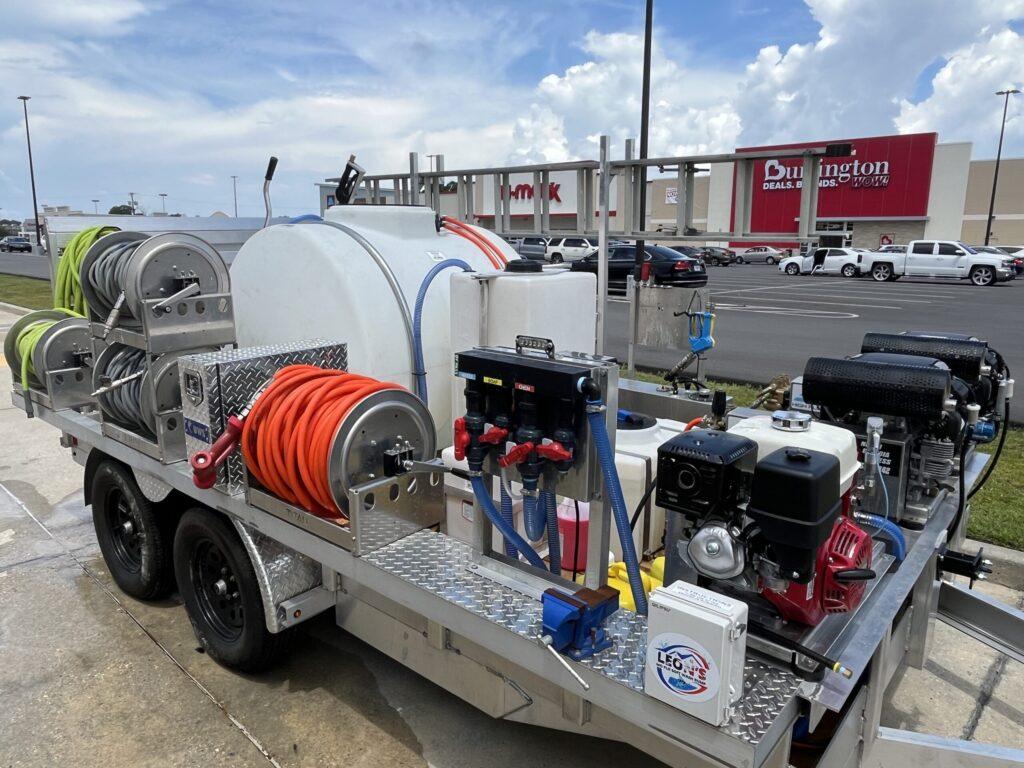 We’ve invested in the best equipment in the industry to deliver exceptional results. Our soft wash system can shoot up to 80 feet at 14 gallons per minute, allowing us to apply cleaning solutions up to 5 stories high without needing a ladder or man lift. We also have two pressure washers, along with a hot water unit perfect for grease cleaning and gum removal.